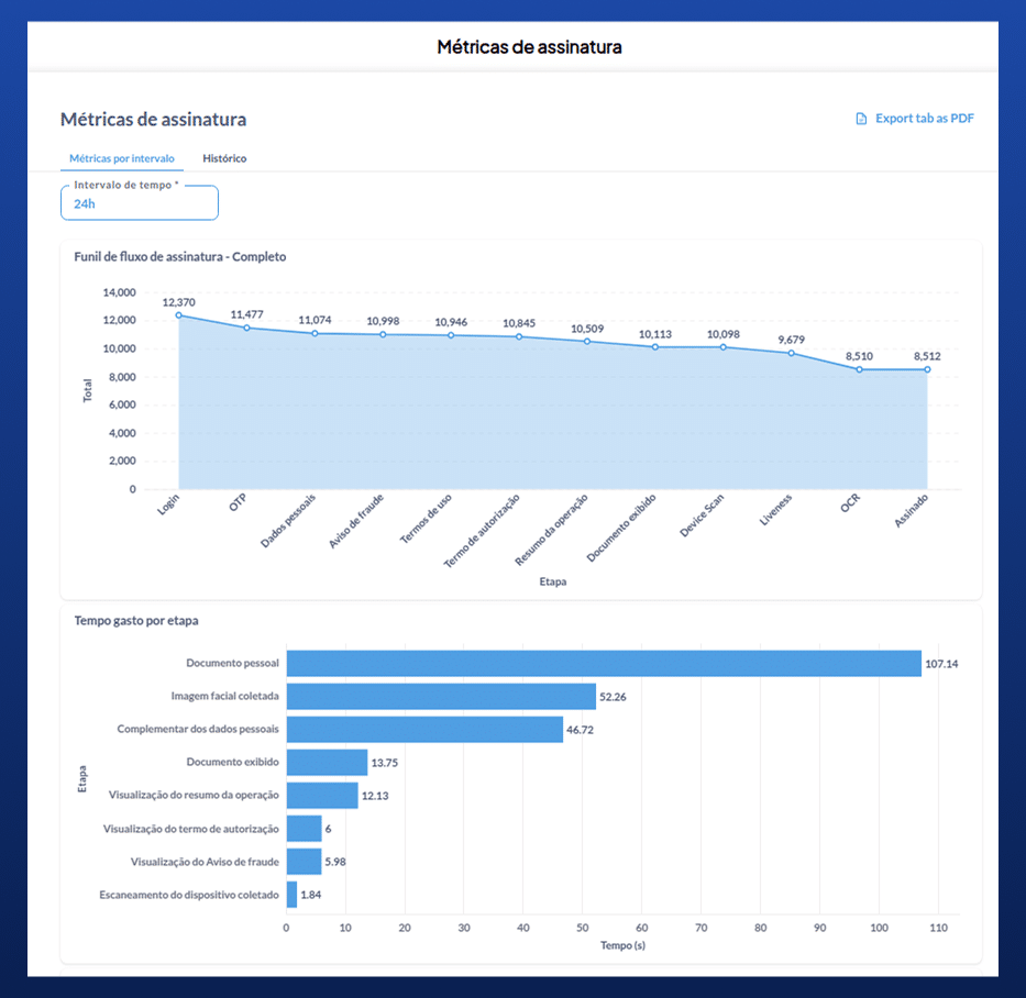 Acompanhe a performance dos fluxos de assinatura em tempo real com o novo dashboard de métricas. Mais visibilidade para melhorar a tomada de decisão.